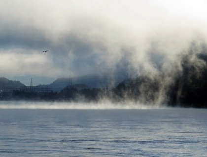 After a drive by viewing of the Astoria Column, we returned to the National Geographic Sea Lion for a delicious lunch. Then we once again boarded the buses and headed off for Cape Disappointment, on the north bank of the Columbia River in Washington State. To get there, we crossed the Columbia on the impressive Astoria Bridge. Sea lions, pelicans, gulls, and cormorants could be seen hunting for fish on the open water. Cape Disappointment is the home of the Lewis and Clark Interpretive Center and the Cape Disappointment Lighthouse, which is the oldest west coast lighthouse still in operation. Most of the guests took a hike with naturalist Rich out to see and photograph the lighthouse.