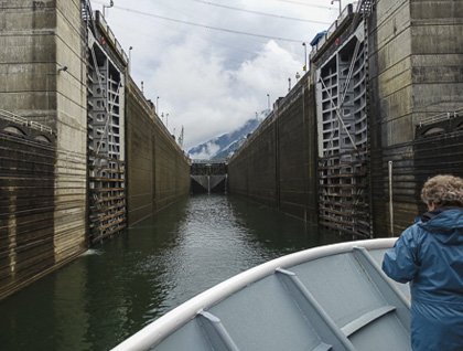 The afternoon presented us with a variety of options. Under clearing skies and patches of blue, some of us chose to go kayaking or cruising in an expedition craft through the Lewis and Clark National Wildlife Refuge. Others continued our pursuit of the Corps of Discovery by exploring the northern shore of the Columbia. We stopped at Station Camp where the corpsmen took shelter and trekked out to the headland known as Cape Disappointment. As we made our own way to the Cape, we recalled that the mouth of Columbia was fortified during the American Civil War with three artillery bases bristling with guns to defend the river against any incursions by hostile Confederates. The Lewis and Clark Interpretive Center, which offered us spectacular views out to open sea beyond the Columbia Bar, is perched atop one of the old concrete-enclosed batteries of the United States Army Coast Artillery, a crumbling ruin once armed with six-inch guns with a range of 8.2 miles.