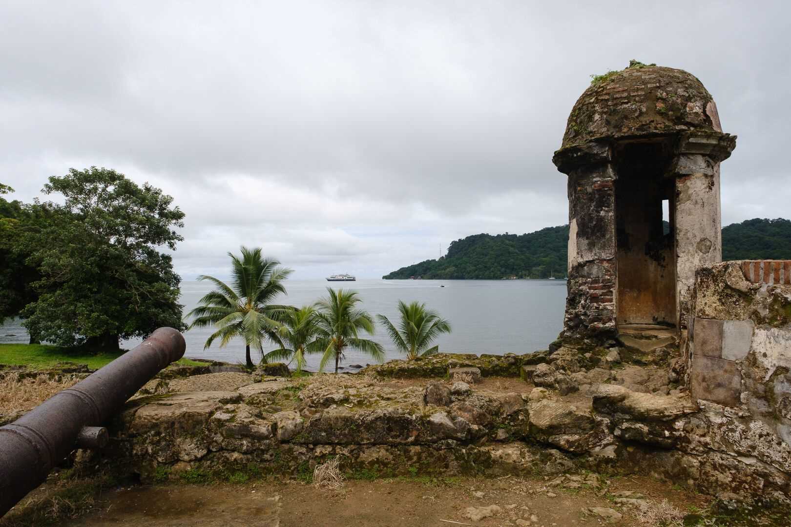 We enjoyed a spectacular early morning entrance into the historical Spanish fortification of Portobelo, which is tucked into the only protected area east of the Panama Canal on the northern Isthmian coast. Discovered by Cristopher Columbus in 1502, the area eventually became a famous Spanish port. Most of the Peruvian gold and silver arrived on the Pacific shores of Panama and was then transported overland by mules to Portobelo and transship back to Spain.