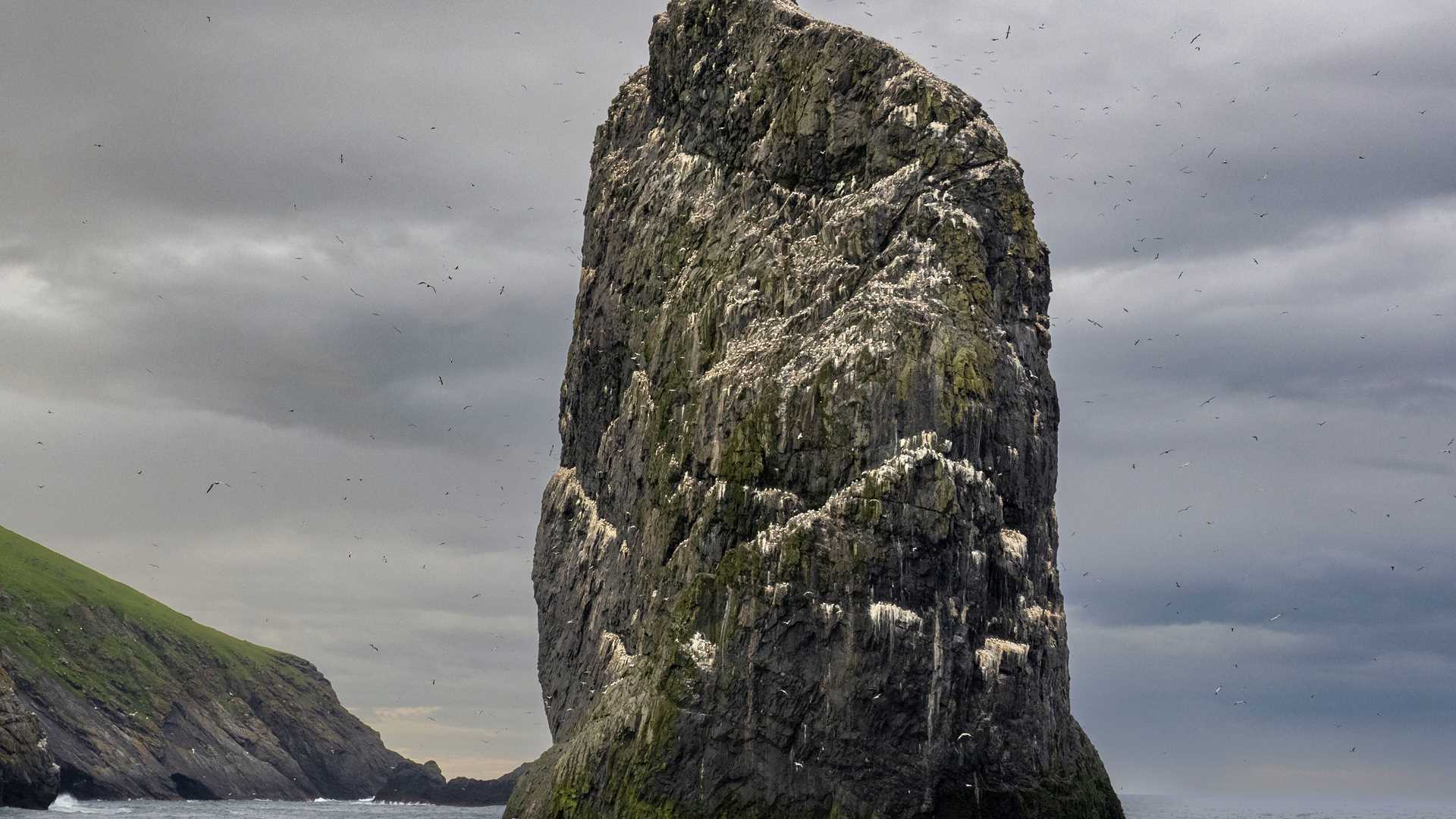 One of the greatest things about a Lindblad Expedition is that even when weather prevents you from doing a planned excursion, it never means doing nothing for the day. In true expedition style, it means exploring the possibilities and figuring out an incredible plan B. Today was one of those days. Even though our initial plans were cancelled by weather, the day turned into an incredible adventure and in my mind, it was one of the best days of the expedition so far. We started early with a visit to Stac Lee, a sea stack with hundreds of thousands of gannets nesting on the island. It hosts the largest gannet colony in Scotland. When our planned visit to St. Kilda was cancelled, we set off to the Isle of Lewis to visit the Stones of Callanish, a spectacular megalithic monument dating back to 3000 BC.