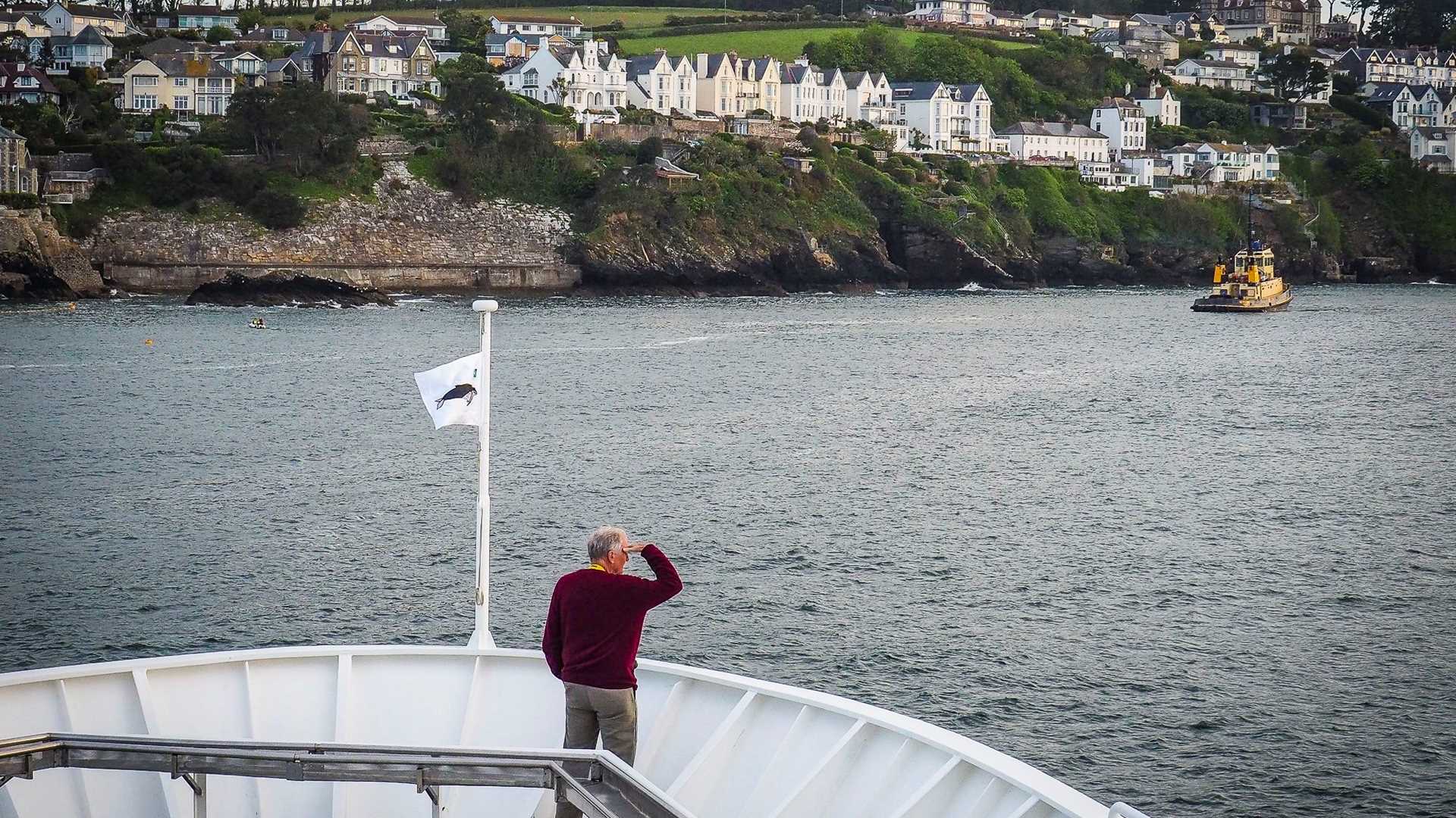 After an overnight sail along the south coast of England, we arrived in Cornwall before breakfast for a spectacular entry to the harbor at Fowey, a name derived from the Cornish word for beech trees. These Cornish harbors have nurtured generations of seafarers, fishermen, and sailors in the navy. Geomorphologists recognize these harbors as rias, inundated river valleys that were formed from isostatic rebound, for the coast of south-western Britain has been slowly sinking since the retreat of the ice cap some 10,000 years ago—even as the northwest has been gaining in height. The harbors thus created are deep and sheltered, and they allowed National Geographic Explorer to moor upstream beyond the town, which clings attractively to the steep western shoreline of the estuary.