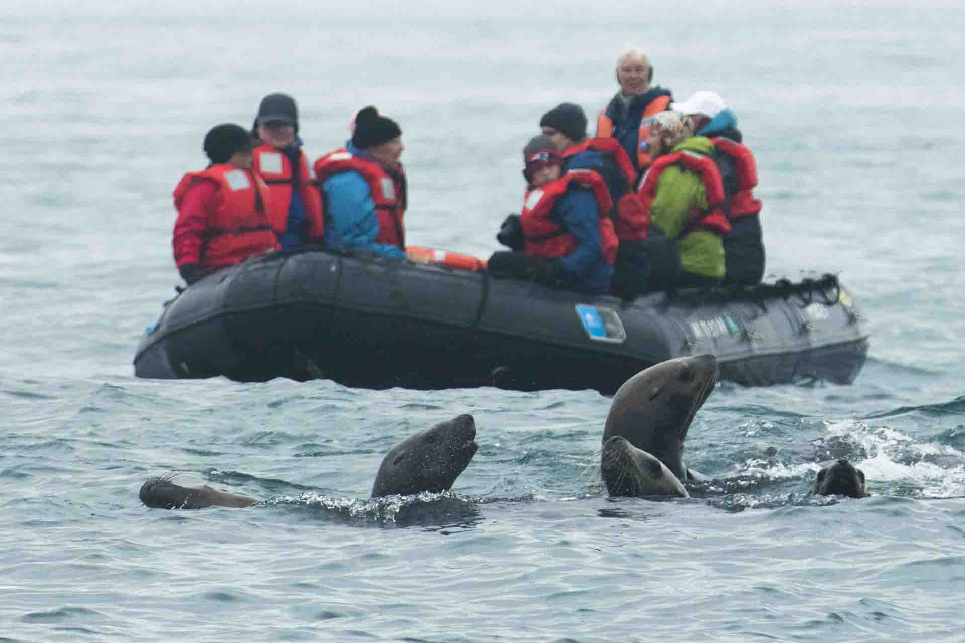The afternoon brings us to one of our favorite places–the Inian Islands. Here Alaska’s great tides generate incredible currents that stir up nutrients and stimulate growth. This produces an immense density of life, which is seen, heard and smelled by all of us as we experience it firsthand. We all take boat rides around the islands to get close views of Steller sea lions, sea otters, and bald eagles flying overhead. The icing on the cake was a humpback whale we found lunge feeding by the rock wall. Today has been another amazing day exploring Southeast Alaska.