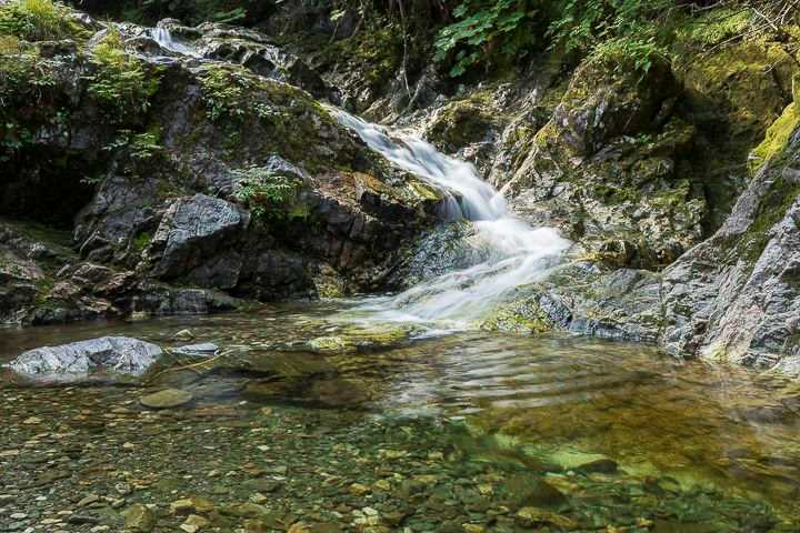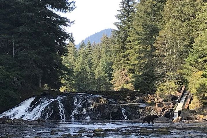 We woke to pretty clouds above the tree-covered hills as we sailed into Idaho Inlet, seeking wildlife. After breakfast, we landed at Fox Creek and hiked into a small waterfall along a salmon stream, through stately spruce and hemlock trees. The temperature was cool in the forest and black-capped chickadees sang to us as we walked along. Kayakers paddled in a beautiful cove with mirror-like waters, and other guests headed out on a cruise along the shoreline to search for wildlife and birds. It was a stunning morning. We sailed to the Inian Islands anchorage during lunch, and soon we were launching our expedition landing crafts to explore. The waters of the Inian Islands and Cross Sound are rich with nutrients due to the mix of upwelling currents and flooding tides, providing a wonderful food source for marine wildlife and seabirds. On this wonderful day, we saw Steller sea lions, sea otters, many humpback whales, and a minke whale. Late in the afternoon, we sailed over near Elfin Cove and went ashore to explore this picturesque and quaint fishing village on foot, making friends with the local dogs and talking with fisherman as we walked along the boardwalks of town.