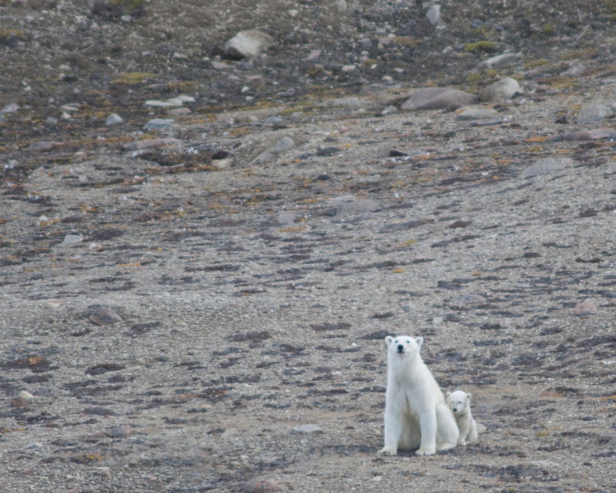 Those on the Zodiac cruise could only see one lone male up on the hill, but they were rewarded with close views of a few ringed seals that dotted the coastline. These short but plump seals are one of the favorite prey of polar bears. For eons the battle of wits and cunning has unfolded between these two species these as they play out their ice dance. These plumper version of a harbor seal enjoy time on the ice when it is present but will haul out on a beach or rocks where they are available. They are just biding their time until the ice returns in October when they will have relative safety from land bears.