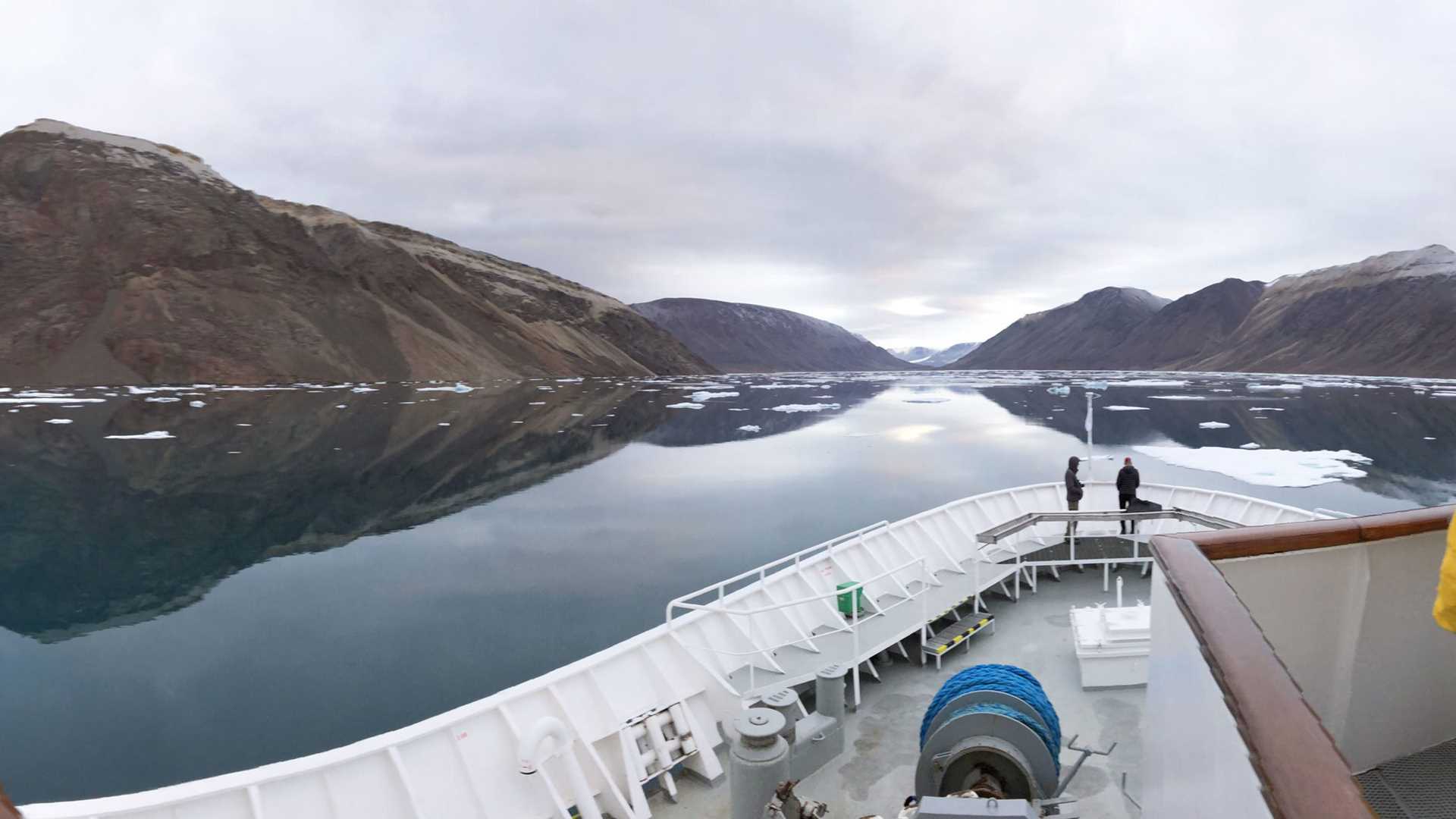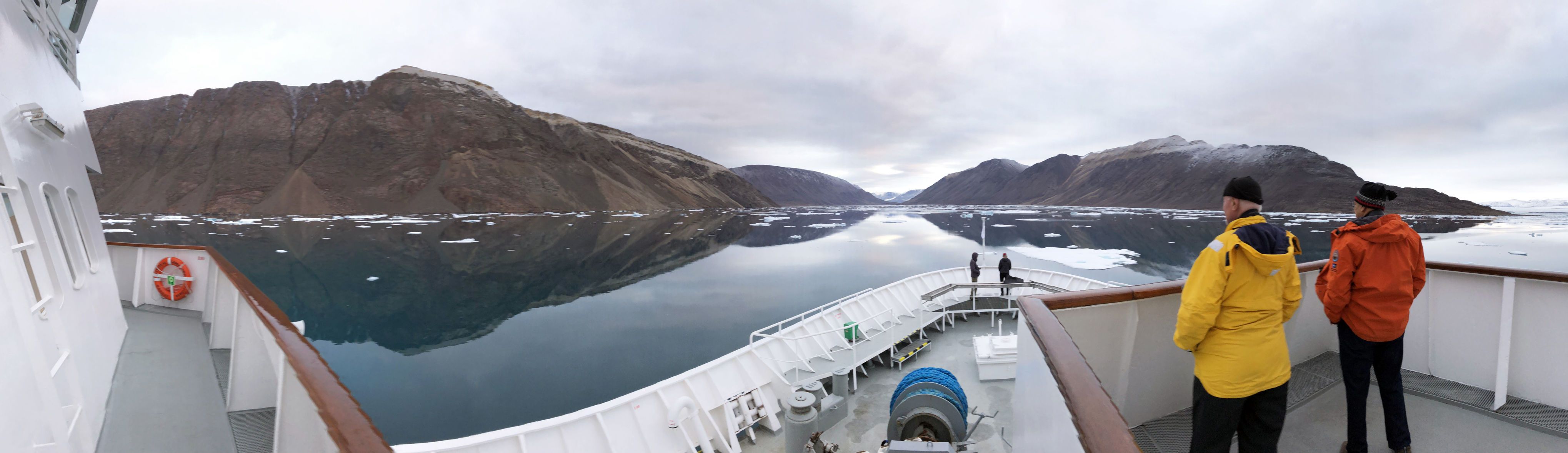 Hiking or Zodiac cruising were the options during our morning in the Fram Fjord. After lunch, we sailed towards the southeastern tip of Ellesmere Island, and a couple of presentations were given by expedition staffers James Hyde and Karen Copeland. James talked about the whimsical world of pinnipeds while Karen introduced us to plants in the Polar desert. The evening was calm and sunny. We now sail northwards and see how far the ice allows us to go.