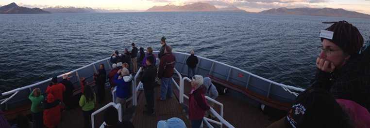 With our bellies full, a welcomed announcement from our expedition leader, Stephanie, informed us that there were humpback whales near the ship. With the sun setting, the water once again danced and shimmered, this time with whale tails adding to the sacred waltz. If there is a better ending to a perfect day, I do not know of it.
