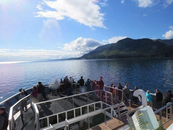 Glassy seas and sunshine welcomed us to another beautiful morning of our voyage. Dall’s porpoises joined us as we slid through Fredrick Sound, riding on our bow wave and giving us quite the show. As one of the fastest cetaceans, they had no problem keeping up with National Geographic Quest. Not to be outdone, humpback whales surfaced around us as sea lions swam about. One of the many wonders of Alaska is just how much you can see in one place at one time, and this morning highlighted that. As an added surprise, we had wonderful sightings of several moose as they walked along the beach. This was an exciting find; even our expedition leader commented on how it was her first time seeing them with guests from a ship.
