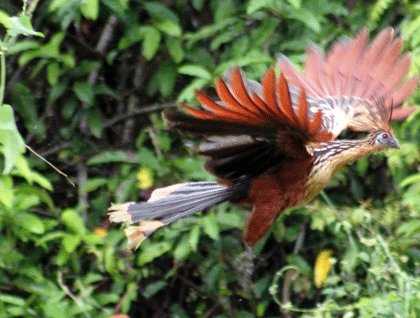 The highlight of the morning outing was the wonderful hoatzin (Ophistocomus hoazin). The natural history of this prehistoric-looking bird is eminently curious. It is, literally, comparable to a cow. In a nutshell, it can be described as an arboreal cow. It eats leaves that are digested in specialized stomachs. Young hoatzins have claws that help them to come back to the nest after jumped in it fleeing from danger.