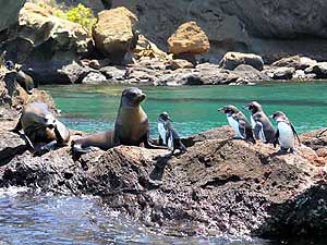Now this volcano has been erupting since October 22, when people celebrating a party in the highlands of Isabela experienced a small earthquake. Goat hunters felt it too; they were at the rim, left everything behind and ran down to town. The news also came from a boat anchored in Elizabeth bay: Sierra Negra was spouting a lava fountain nearly a thousand feet high. It was Saturday evening, and the Islander was a hundred miles away from the volcano, in Espanola. But even from there we could see a reddish horizon thanks to the energy of this magnificent eruption. Six days later the volcano is still sending molten rock into the sky and pouring rivers of lava into its caldera. It has lost some power, but still, it is Sierra Negra, erupting, in front of our human eyes. We are so little, but feel so huge now that we have witnessed one of the processes that shape planet Earth.