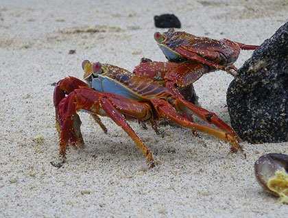 Then, breakfast came in, and we all got dressed for the best snorkeling of the week! We got to see sea lions, colorful tropical fish, octopus, rays and diving boobies. The other folks were ready for a Zodiac ride around Champion Island, in search of the rarest of the Galápagos mockingbirds: the Floreana mockingbird. After success and 10 spotted creatures, we went back on board.