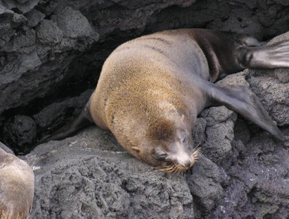 Those guests who did not feel like rock-hopping were offered a brief zodiac ride along the cliffs and a short easy walk where they could also observe a lot of the wildlife. The heat, on the other hand, played tricks on us, as this was an extremely hot early morning, maybe a little more than 95 degrees Fahrenheit.