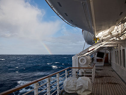 The morning was clear and warm as we approached our goal of Carcass Island. There were a lot of Black-browed albatross flying around the ship; could this be a sign of things to come? Soon we were at our anchorage. Right after breakfast we embarked the Zodiacs and headed for shore with wildlife and a long walk in mind. From our landing the Naturalist led hikes across the island to a place called Leopard beach. Along the way we saw a variety of birds, including the Magellanic penguins, which live in burrows in and around the tussock grass. It was also our first glimpse of the striated caracara, a scavenger type hawk/buzzard that lives only on the Falklands and a small area of southern South America. To our surprise, there was not much of a beach with the extreme high tide that we were experiencing this morning. Armed with our rubber boots, we were able to still stroll along the little bit of beach that was left with all this water.