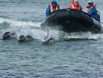 One of the previous owners of New Island, Kim and Tony Charter are still living at the camp with two children, five and seven years old. They joined us for lunch as we made a very short reposition for our afternoon adventure to North Harbour. As the Zodiacs brought us ashore, a pod of Peale’s Dolphin made our life very wet. Usually any splash into the boat is regarded as very unpleasant, but these dolphin were really putting on a show and nobody was dry as we stepped out onto the beach.