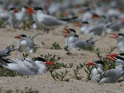 Island of Birds plays host to 21 species of birds, including Caspian and Royal Terns, Kelp and Gray-headed Gulls, Great and Long-tailed Cormorants, Pelicans and the African Darter. We have arrived in the middle of one of the two breeding seasons. From March to May, Caspian Terns lay two to three eggs in the sand on the point of the island. Those not overhead, loudly warning us to keep our distance, were nestled over their unhatched eggs, protecting them from the heat of the day. Caspian Terns have a two-fold system of desalinization so that they can drink water directly from the sea. In addition to filtration in their kidneys, they have a gland in their skull, at the base of their vibrant red bills, which assists in the secretion of salt. In a few months, from June to September, Herons and Egrets will also nest here, on top of the mangrove trees.