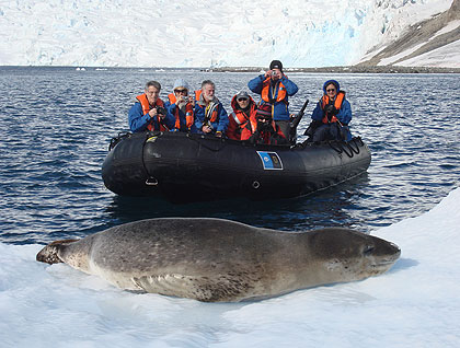 We made our continental landing at Argentina’s “Base Brown” where many of us climbed to the top of a very steep hill to get a panoramic view of this glorious place. The landing was followed by zodiac excursions with close encounters with snoozing leopard seals, sculptured ice bergs and, for some, minke whales.