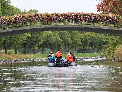 Fortunately, the rain cleared for the highlight of the day: a Zodiac ride straight into the heart of Stockholm via the Djurgarden Canal, a narrow scenic passage that spills into the busy city harbor with its gorgeous facades and sailboats. In the clean harbor, we saw swans, a grey seal, and blue herons nesting. After crossing under a lovely bridge lined with September’s last red flowers, we were surprised by Hotel Manager (and Swede) Patrick Svardmyr welcoming us to his country with a cocktail. Much more civilized than the Vikings!