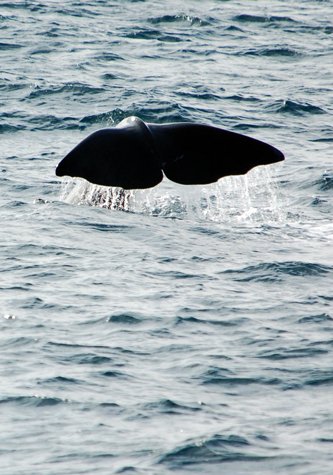 After leaving Bjornoya, the National Geographic Explorer, made her way south but also a little west in order to find the dropoff! The entire Svalbard archipelago lies on the continental shelf of Europe. To the west there is a sudden and sharp deepening of the North Sea. In fact the deepest spot in the Arctic Ocean is just west of Spitsbergen Island. The water reaches over 18,000 feet deep in this region. At the drop off water currents cause an abundance of food to be produced for such things as whales. Our sharp eyes on the bridge managed to find several members of an elusive species, the sperm whale. These males of this largest of the toothed whales group make their living diving to great depths in search of squid. They are elusive due to their long dive times and short surface intervals. We happened upon a few as they were reoxygenating their bodies and then showing their tell tale flukes before the next trip to the abyss.