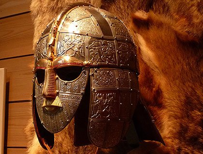 Their leader, Raedwald was both warrior and diplomat, who united the Germanic tribes of eastern Britain and received a sumptuous burial site above the estuary on a high sandy ridge or “Hoo” at the south village “Sutton”. In keeping with his stature, he was buried with his 90’ boat, weapons, jewelry, horses, cloak, food and a helmet which was to dazzle the people who finally unearthed it.