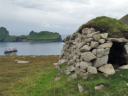 After sailing west from the Isle of Lewis last night, we arrived this morning into the verdant Village Bay of Hirta, the largest island in the remote archipelago of St. Kilda. This distant area of the Outer Hebrides was slammed by some of its typical, ferocious Atlantic storms during the past few days. However, to our tremendous relief, the winds were calm and the swells were merciful to allow us a splendid chance to set foot on this far-flung corner of the world.