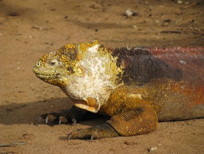 After some preparations we were ready to begin our exploration, so we went. Big marine iguanas were there and they really caused admiration among us. Later on, the land iguanas that appeared on the trail were not lesser than their marine cousins in either beauty or in size. However the most significant moment of our visit was to find a very young tortoise along the trail. Her small and beautiful frame reminded us of how healthy their kin is on this volcano. After the hike a short but refreshing dip at the beach was very welcome.