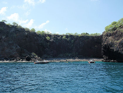As soon as we started the day, and before breakfast, kayakers enjoyed the beautiful sourrounding islets at Gardner Bay. Aqua, transparent warm waters filled with sea turtles and sea lions were the absolute gorgeous setting for early morning kayakers. Snorkelers had the best of times with a water temperature of 80 degrees Fahrenheit. Lots and lots of colorful fish were observed, sea lions came to play with us, and the water was so nice and clear that nobody wanted to leave! The beach time was shared with hundreds of lazy and friendly sea lions.