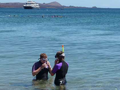 After seeing a fantastic view from the top of the island we headed back to our ship for breakfast. Immediately after, we landed on the beach for the opportunity to snorkel for the first time! Lots of different fish, a group of Galápagos penguins and a white tip shark made the first snorkel a very good introduction to Galápagos marine life.
