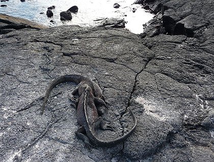 Our dry landing came without a siesta. The largest of all marine iguanas were the welcome committee. They displayed their well-adapted behavior to regulate their temperature and get rid of the extra salt.