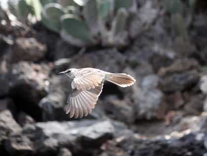 Once we were done looking for letters at Post Office Bay and its famous barrel, we sailed towards Champion Islet. Once there, we went on a Zodiac ride along the coast looking for one of the rarest birds in the world, the Floreana mockingbird. We encountered some, or maybe we should say they encountered us. We were followed by one which showed great interest in us. However, it was possible that the bird may have just been checking its territory and found us along the way.