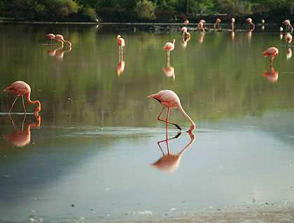 Almost at the end of the day we all landed at Cormorant Point, situated on the northern side of Floreana; to explore this part, we crossed a little peninsula, walking along a big brackish water lagoon that had so many greater flamingos. Our guests took a lot of pictures and since the sun was almost setting there was a very good light. We walked to a white sandy coralline beach where there were a lot of nests from green pacific sea turtles; some of the sea turtles were floating very close to the shore as they were almost ready to come ashore for their egg laying.