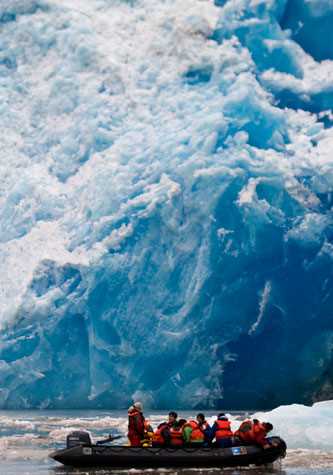 After winding through one of the most beautiful fjords in the world we found a quiet spot amongst large floating pieces of ice where we soon dropped boats. Zodiacs are often the key that unlocks the door to adventure for us. After breakfast and briefings we boarded them for a closer look at South Sawyer Glacier.