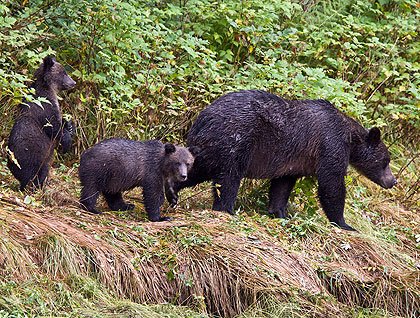 We took to water level in Rudyard Bay where steep sided granite walls and misty fjords are the centerpieces. Zodiac tours and a kayak expedition through the narrows made for beautiful images. A mother brown bear and her 2 cubs in the meadow fishing, bald eagles soaring above the towering red cedars, and harbor seals basking lazily in the sun on a floating log connected the waterfalls and streams in this majestic forest. Perhaps, though, it is beauty that binds us.