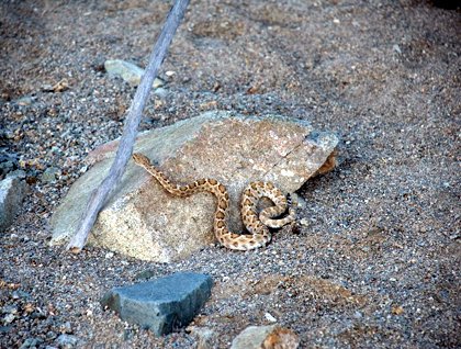 The cardons are larger here and the giant barrel cactus can tower over eight feet tall. Galloping cactus, cholla and coyote melon also spot the surface of the arroyo. Everywhere we looked we could observe the various adaptations of desert plants that naturalist Linda Burbank shared in her presentation earlier today. Hikers also had to be watching the path carefully, lest they find themselves stepping on silent slitherers. But we were all very excited to come across one of these famous rattleless snakes. While the more timid stayed back, naturalist Carlos Navarro tamed the snake for closer looks. The evening ended with wonderful sunset photo opportunities on the beach as the boat circled off Elephant Rock.
