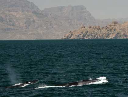 We spent the whole day today within the boundaries of the Loreto Bay National Park, one of the largest marine protected areas in the Gulf of California. Established in the mid 90’s, this reserve protects one of the most beautiful regions in the Baja California peninsula and includes Montserrat, Coronado, Carmen, Danzante and Santa Catalina islands. Long-beaked common dolphins greeted us swimming around the National Geographic Sea Bird with the speed and grace that only they have, while the rugged peaks of La Giganta range glowed with the early morning light. Sailing between Carmen and Danzante islands we sighted distant blows. Many blows! We headed towards Montserrat Island and soon encountered numerous fin whales, the second largest whale after the blue, and certainly one of the prettiest ones. Swimming in pairs, trios or even more, whales together could be seen all over the place. Several times we were inspected by them as they approached the ship just off the bow! For two and a half hours we enjoyed watching fin whales, as well as a solitary humpback whale. At times it seemed as if the whales were engaged in some romantic endeavors, rolling just below the surface, their white bellies glowing in the dark waters! And this being a Photo Expedition, you can imagine the number of photographs that were taken!