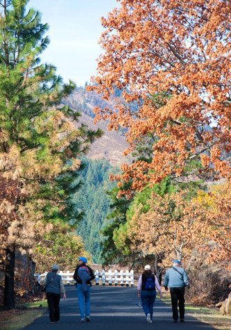 Following breakfast, we make our way by motor coach to Multnomah Falls. The sun casts a glow of autumn’s subtle emergence, illuminating the tops of the Cascade Mountains. Shades of amber and pale crimson come into sight scattered amidst the predominantly verdant mountainside. The volcanic rock formation, Beacon Rock, named by the Corps of Discovery, is in clear view. Its height is comparable to that of Multnomah Falls, reaching over 600 feet to the top. Once reaching the falls, those who choose, forge ahead for a challenging hike to the top. Many wish to admire this beautiful vista at their leisure, taking pleasure in the several scenic overlooks along the way. Others still, enjoy the view from the base of the falls, perhaps sipping on a soothing hot latte.