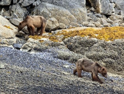 After leaving Elfin Cove, we pulled the anchor and headed to the Inian Islands. We loaded the Zodiacs and set off to see the very active and friendly stellar sea lions that call this place home. Several of the sea lions were happy to show off their fishing skills, tossing the salmon and halibut they caught high into the air.
