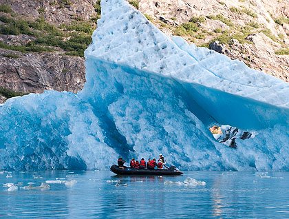 Moving in Zodiacs through the ever changing and rather surreal scene of such immense beauty left us joyful and amazed. The haunting beauty of unnamed thousand foot waterfalls and impossibly beautiful art glass ice is a wonderful conclusion to our glorious week of exploration. Cruising near the Sawyer Glaciers at the head of Tracy Arm fiord is enjoying Southeast Alaska celebrating itself.