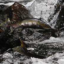 As we watched, a small coastal brown bear came out of the forest right behind us! The bear was about 20 yards away. It sniffed the air getting our scent, and in a few seconds vanished back into the forest. A couple minutes later, the same bear emerged again, now on the opposite side of the stream. We had the chance to get a great look as it walked along the stream and climbed a steep mountain side, vanishing back into the woods.