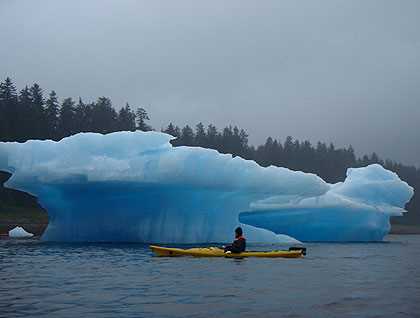 In the afternoon, we made our way to Williams Cove, for our first trip ashore and our second opportunity to test out or galoshes, rain pants and Gore-Tex jackets. The lush forest was a haven of exploration in the way of plants, fungi and trees. In the intertidal area, there was another complete collection of wonderful things to see. Some chose to climb into kayaks for the opportunity to paddle to an iceberg that has been grounded here in the bay as a result of low tide. The deep blues of the iceberg were especially vibrant in the grayness closing in on the water. All were grateful for the dry shelter and warm meal waiting back on the ship, and as the day came to a close, the sea and shore of Southeast Alaska continued to drink up the rains that have finally returned.