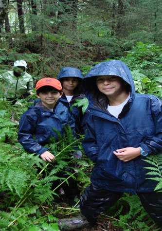 Cascade Creek at Scenery Cove is a jewel setting, with the path from the shore taking us into a verdant forest along a tumbling stream. Various length hikes led up a boardwalk past a roaring waterfall, spraying us all as we passed in its mist, heading further into the deep of the temperate rainforest. Part way along, a bridge crosses over a narrow trough in the rock, filled with the raging torrent, another great place to linger and marvel at the power and force of this stream, while some of us continued up the trail to more challenging terrain.