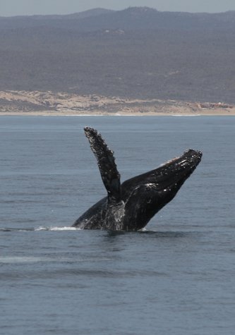 After a very calm night traveling south, we awoke this morning near the tip of the Baja peninsula. The intention had been to sleep in, but humpback whales were sighted at 7 am, so our expedition leader gently encouraged us to step outside... in our pajamas. We watched them in the early morning quiet, and then continued on our way. Other humpback whales swam and dove within view of the ship.