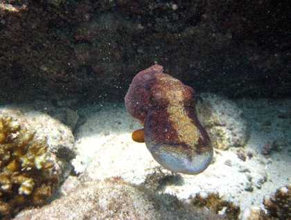 This morning an unusual wind from the east worried us about the conditions for snorkeling and kayaking. Nevertheless, as we arrived at Granito de Oro we found that the wind created an eleven foot tide that was concentrating the fish in certain calm sections of the rocky reef. In addition, as the wind eased its intensity the conditions became sublime by late morning. Rainbow wrasse, scissortail chromis, bluechin parrotfish, white tip reef sharks and some guests even observed the elusive hawksbill turtle and an octopus.