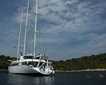 We navigated north into the protection of Porto Palermo. Under the shadow of the Ali Pasha castle, we spent the afternoon swimming, kayaking or embracing the Albanian version of a siesta. The evening was pure magic. Walking up a cobbled pathway we came up to the castle. Atop the wall at the entrance was Vendim Japaj playing his flute, accompanied by Katima Rika singing softly. Our hotel staff had brought wine and appetizers to the castle and we quietly listened to the duo as they continued their evening serenade. The mood created by these two gifted musicians in the castle setting with the glow of the sunset behind them was something to be remembered and treasured.