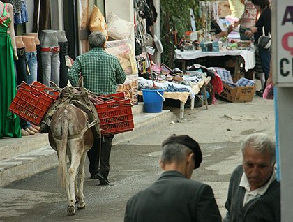 We docked in the town of Sarandë, a seaside resort popular with Albanians, Kosovars and Macedonians. Like many places in Albania, it has a surfeit of unfinished buildings. After the Albanian economy collapsed in the pyramid schemes of the mid-90s, Albanians decided that land and buildings were better stores of wealth than other investments. So those who can afford to do so begin constructing buildings, adding to them as they have the funds.