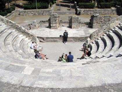 The island is rather large and busy and is situated amongst the Dodecanese islands so far east that you can see turkey from its port. We started the day with some intellectual stimuli; a tour of Kos and some of its major sights. We first walked into town to get a quick glimpse and to visit the plane tree under which Hippocrates was said to have worked. Then we went on by bus to the famous Asklepion, a former curative centre where the theories of Hippocrates were put into use after his death. This was followed by a visit to the Roman ruins and Odeon and some free time in the busy town for shopping or simple people watching.