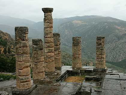The moment we woke up, we rushed upstairs to enjoy the view of Mount Parnassos and Delphi from the distance. The weather was very unusual for September; it was raining and the dark clouds had covered Mount Parnassos. We started our tour early in the morning and despite the unwelcoming weather we were surprised to discover that we were almost on our own in the archeological site, facing Apollo.