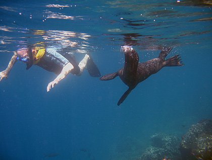 Later in the morning we got into our Zodiacs and headed towards Champion Islet, where some of our guests boarded our glass bottom boat, and others snorkeled along the dramatic cliffs, where spectacular large schools of fish and sea lions provided them with the best time.