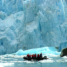 As we turned our backs to Dawes Glacier and headed back to the Sea Bird, we were rewarded with the finale. Suddenly the displacement of water at the base drew our curiosity and the rarely seen shooter appeared. What we had just witnessed was calving that occurred below the waterline and a huge piece of ice, suddenly buoyant, rapidly shot to the surface. We returned to the ship with huge smiles having witnessed the origin of the ice surrounding the ship.