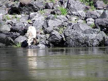 One of the jewels of the canyon presented itself to us along the way and the captain slowed to a stop so that we might quietly witness its presence. The Big Horn Sheep, once so few as to be almost extinct have been reintroduced and are thriving in healthy numbers. We idled just off shore as this four legged subject of our focus seemed, after a momentary look our way, to be unimpressed with our attention and continued on as if we were ourselves simply a part of the landscape.