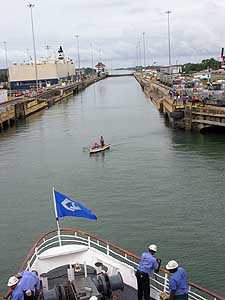 The Panama Canal is a lock-type canal, approximately 53 miles long, that unites the Caribbean Sea and Pacific Ocean at one of the narrowest points of both the Isthums of Panama and the American Continent. Last night, we crossed the two sets of locks on the Pacific side: the Miraflores and the Pedro Miguel locks, and today, off we went towards the Caribbean side to the port of Cristobal. The Canal operates as water lifts to elevate ships 26 meters above sea level to the level of Gatun Lake, and then lowers them back to sea level on the opposite side of the Isthmus. True to its reputation, the Caribbean slope welcomed us with a heavy rain shower, maybe to wash away our last-day-of-the-trip blues…