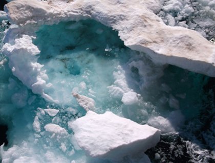 The weather gods continued to smile on us, as it was a beautiful morning with blue skies and sunshine. It was a great chance to spend lots of time out on deck taking photos of the beautiful blue pools in the ice and of course searching for wildlife.